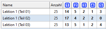 Diese Zahl berücksichtigt nur Vokabeln, die schon mindestens einmal gelernt worden sind. Als „Vorbereitung“ für den Zauberer-Lerntyp sollte also z.B. jede Lektion bereits einmal gelernt worden sein.